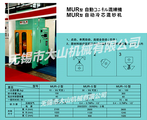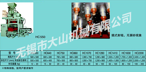 日本浪速铸机株式会社提供全套技术及主要机械、电气、液压、气动部件,大山机械组装及制造,日本专家全程质量监控,确保整机质量,与国际水平接轨。 从混砂机、冷芯射芯机、三乙胺发生器,尾气处理装置及模具全套服务,以合格的砂芯为验收标准(交钥匙工程)。 三乙胺、CO2、甲酸甲酯、SO2四种硬化工艺供用户选择。